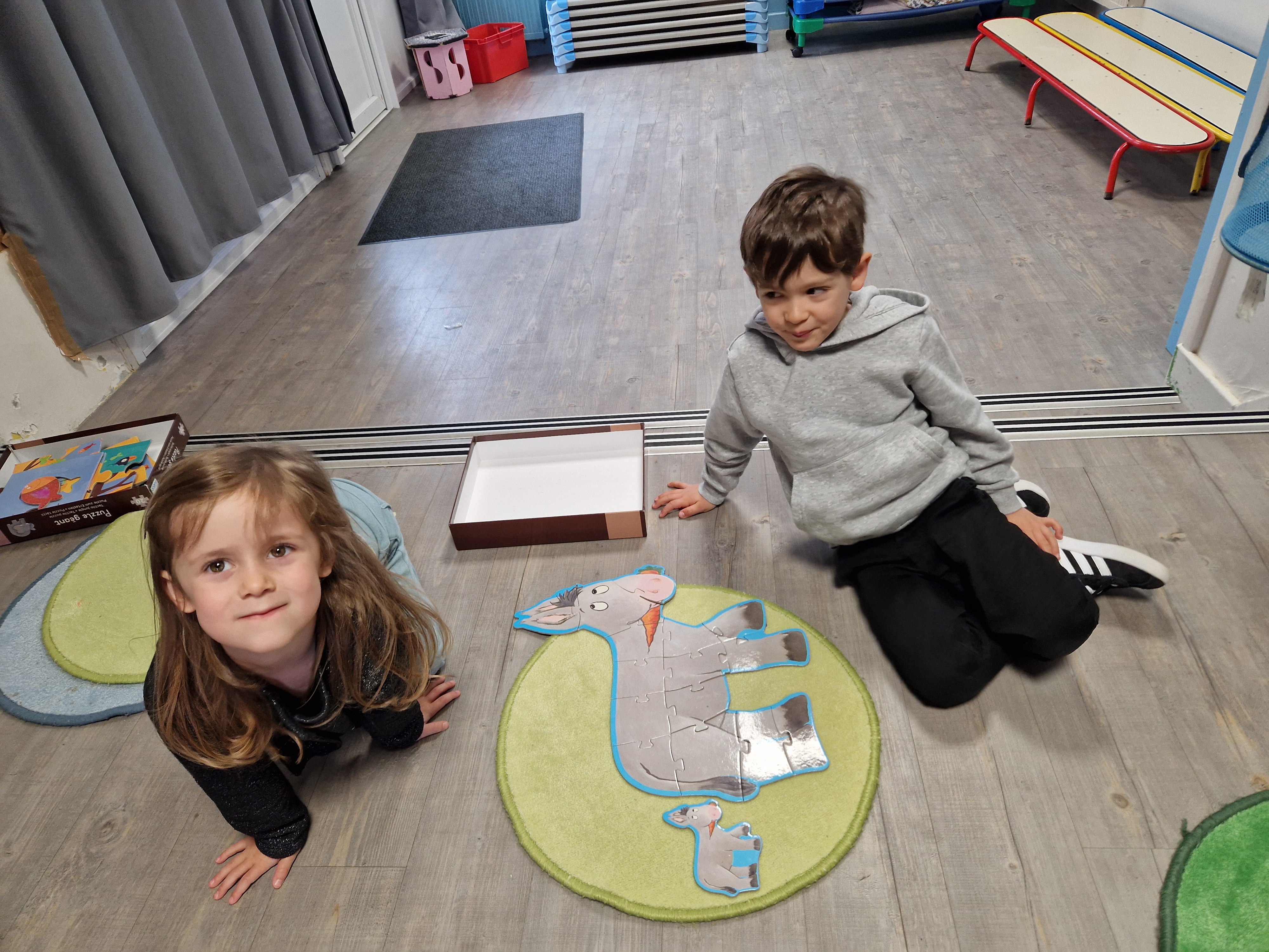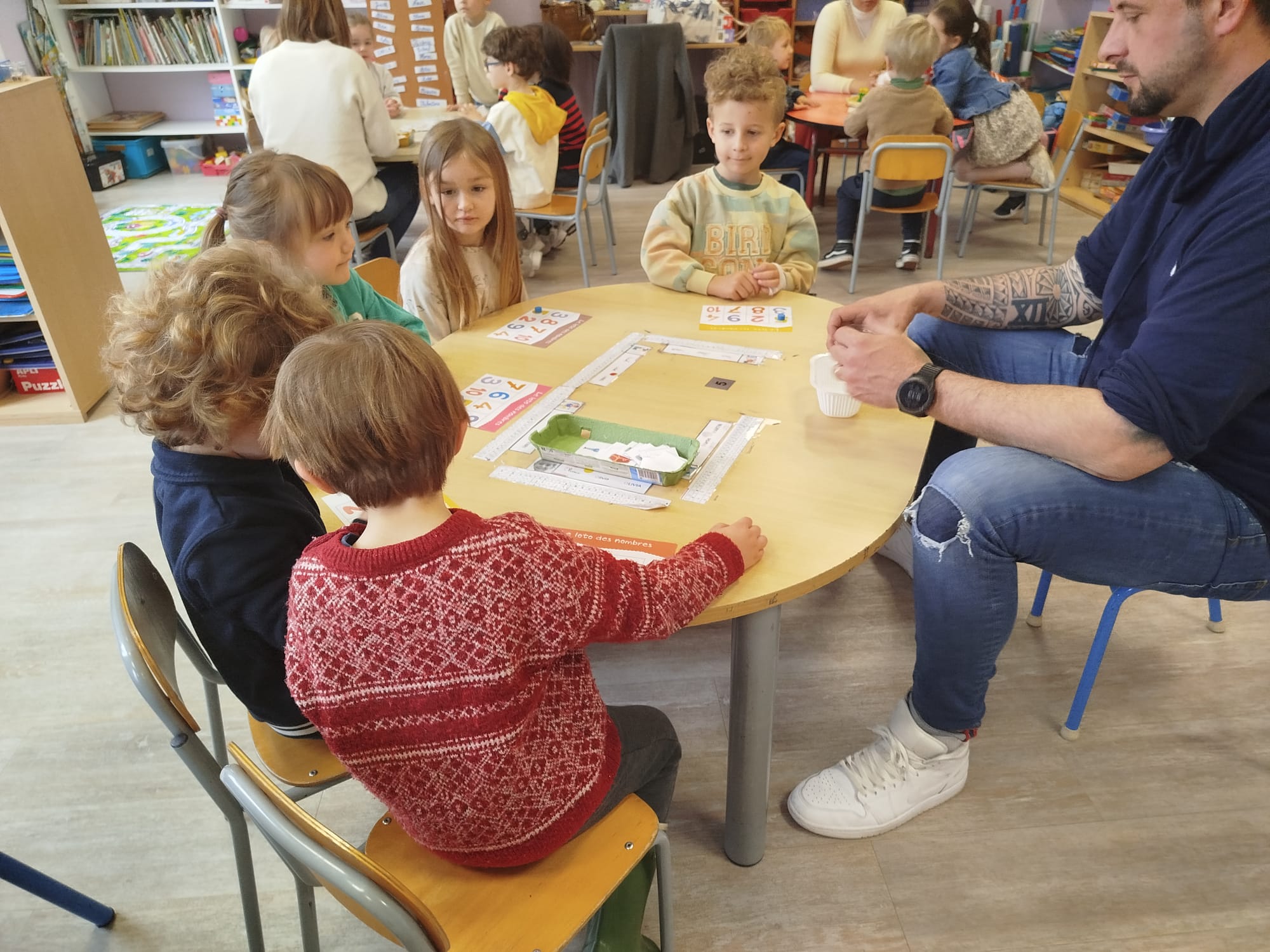Pendant que les primaires étaient en classe transplantée, les maternelles se sont mélangées pour découvrir des jeux de société. Trois classes et différents jeux: au bout de 10 minutes, on changeait. Chaque enfant était affilié à une classe. Merci aux parents d’avoir aidé et animé les jeux. Une très belle matinée!
